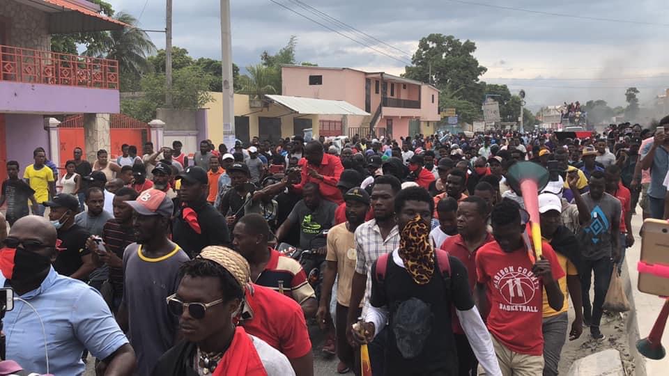 Le leader de “Pitit Dessalines”, Moïse Jean Charles traînant une foule immense a organisé une marche pacifique partant du carrefour de résistance (Carrefour Aéroport) pour aboutir devant les locaux de l’ambassade américaine où il a délivré un vibrant message pour montrer son désaccord avec le gouvernement américain qui, selon ses propos, est responsable de la situation politique désastreuse du pays.