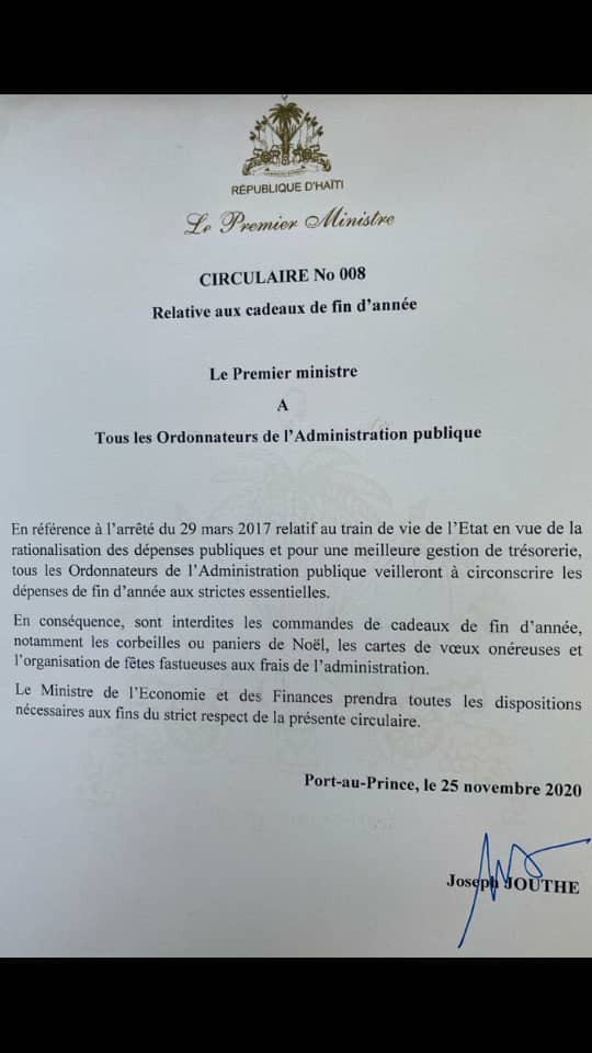 Haïti : Interdiction faite aux membres du Gouvernement de faire des dépenses inutiles en cette période de fin d’année