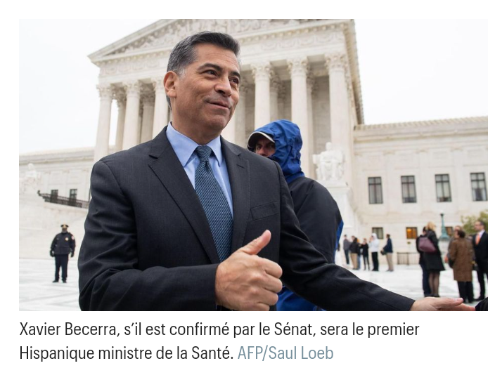 S’il est confirmé par le Sénat, Xavier Becerra, 62 ans, deviendra le premier Hispanique à la tête de ce ministère. Elu pendant plus de deux décennies à la Chambre des représentants, Xavier Becerra avait vigoureusement défendu la réforme de l’assurance santé de Barack Obama, ainsi que le programme DACA adopté pour protéger des centaines de milliers de jeunes migrants de l’expulsion. Ce juriste a également, durant le mandat de Donald Trump, vigoureusement attaqué en justice les décisions du gouvernement républicain.